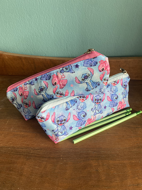 Χειροποίητη πλενόμενη κασετίνα με τους Stitch & Angel. Ιδανικό μέγεθος για μολύβια.