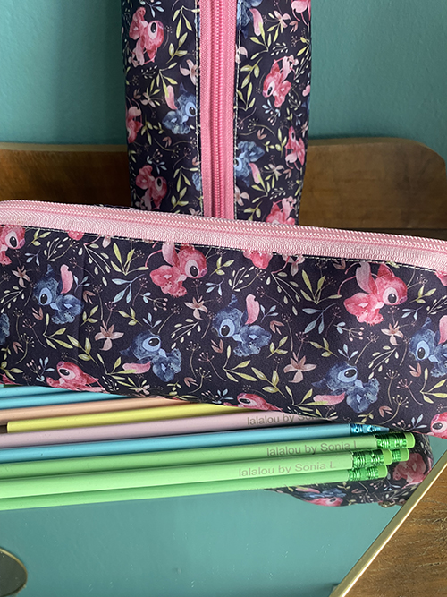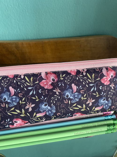 Χειροποίητη πλενόμενη κασετίνα με τους Stitch & Angel. Ιδανικό μέγεθος για μολύβια.