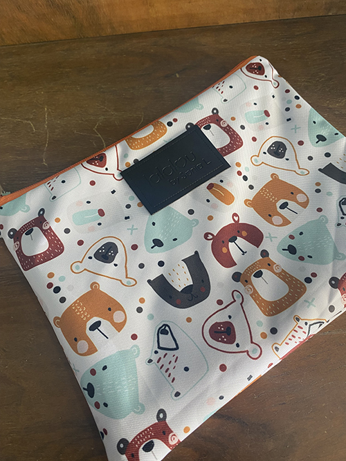Γυναικείο χειροποίητο τσαντάκι αδιαβροχο μέσα κι έξω . Ιδανικό για τις καθημερινές σας βόλτες αλλά και για χρήση ως νεσεσερ, για την παραλία, το κολυμβητήριο ή τα ταξίδια σας . Διαστάσεις 30cm x 22cm .Πλένεται στο πλυντήριο στους 30ο.